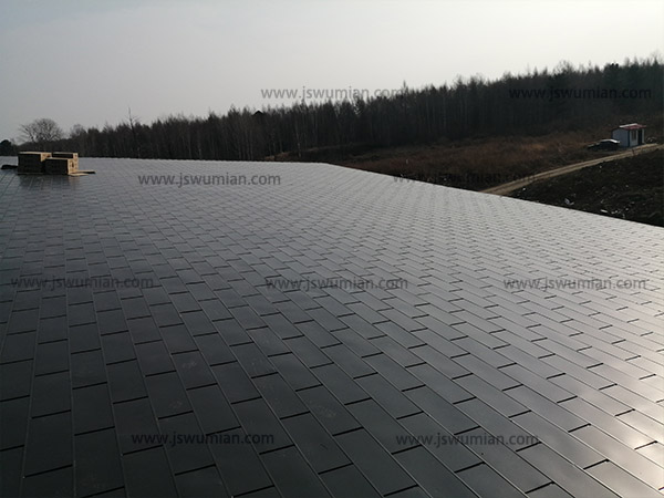 吉林長(zhǎng)白山某垃圾站,此屋面系統(tǒng)采用的是新型建筑材料金屬?gòu)?fù)合瓦鋪設(shè)而成。