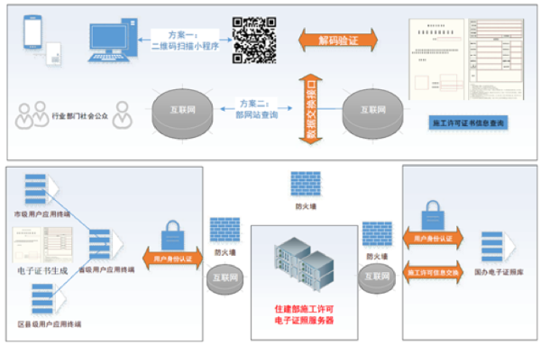 3、電子證照互聯(lián)互通。全國建筑市場監(jiān)管公共服務(wù)平臺及微信小程序向社會公眾提供施工許可電子證照信息公開查詢以及二維碼掃描驗證服務(wù),實現(xiàn)施工許可電子證照跨地區(qū)的互聯(lián)互通。
