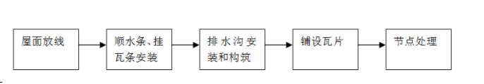 現澆屋面找平→做防水層(氈紙防水或水泥基防水)→做2㎝厚防水層保護層→屋面放線→安裝順水條→安裝掛瓦條→安裝主瓦→安裝配件瓦→水泥砂漿收口。